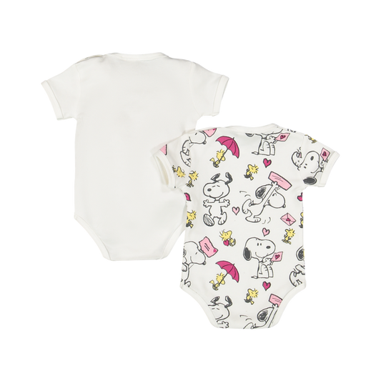 Due body irresistibili in morbido interlock di cotone, impreziositi da stampe colorate dei mitici personaggi Peanuts: Snoopy, Charlie Brown e i loro amici portano allegria e un tocco di nostalgia a ogni outfit! La pratica apertura con bottoncini a pressione sulle spalle e nell’inguine rende i cambi rapidi, comodi e senza stress – perfetti per i primi mesi di vita. Ideali per mix & match o per avere sempre un ricambio a portata di mano, questi body uniscono comfort, stile e divertimento in un’unica confezione. Perché ogni giorno con la tua piccola merita un sorriso… e un po’ di magia Peanuts!