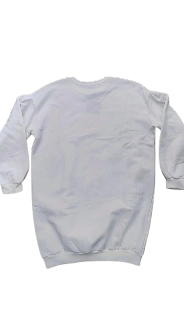 Maxi felpa bianca da ragazza, con stampa frontale “Morositas” in rosa e grafica bold effetto casco. Il taglio lungo e le maniche over la rendono perfetta per un look comfy ma pieno di personalità. Il fondo rosa shocking e il lettering deciso creano un contrasto visivo d’impatto, ideale per chi ama distinguersi con stile. Da abbinare a leggings, biker shorts o pantaloni flare per un outfit street-pop irresistibile.