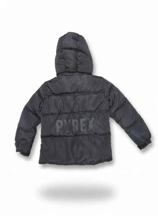 Un capo tecnico e urban pensato per affrontare l’inverno con stile e funzionalità. Il piumino Pyrex è realizzato in tessuto nero trapuntato, con imbottitura calda e leggera che garantisce protezione dal freddo. Il cappuccio staccabile offre versatilità, mentre le maniche antivento con polsini regolabili assicurano una vestibilità comoda e protettiva. Sul retro, una stampa Pyrex tono su tono aggiunge un dettaglio discreto ma distintivo. Perfetto per look streetwear, sportivi o casual.