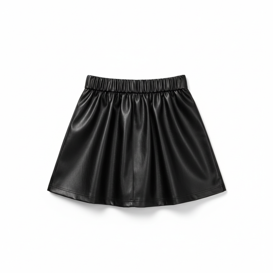 Un capo glam e versatile pensato per le piccole fashioniste. La gonna Naice in vilpelle nera è realizzata in tessuto morbido e felpato, con una finitura lucida che dona un look moderno e deciso. Il design a vita alta con elastico garantisce comfort e praticità, mentre le tasche frontali aggiungono funzionalità e stile. La zip dorata sul retro è un dettaglio prezioso che completa il look con un tocco brillante. Perfetta per outfit urban, casual o da cerimonia.