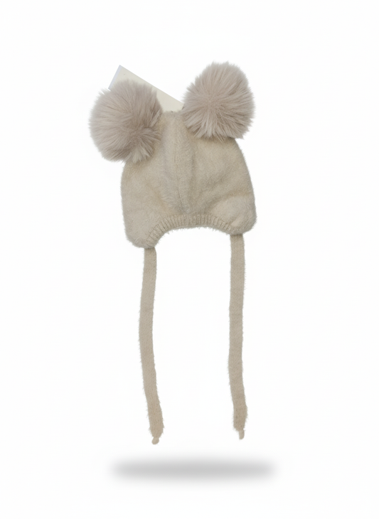 Un accessorio invernale dal design tenero e funzionale, pensato per proteggere i più piccoli con stile. Il cappello Jamiks è realizzato in maglia morbida color panna, con doppio pon pon in pelliccia sintetica che ricorda le orecchie di un orsetto. Le paraorecchie e i laccetti garantiscono una vestibilità sicura e calda, mentre la fodera interna in cotone assicura comfort e delicatezza sulla pelle. Il piccolo emblema metallico Jamiks sul fronte aggiunge un tocco elegante e discreto.