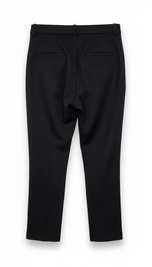Un pantalone pensato per chi cerca un look elegante ma comodo. Realizzato in caldo cotone di buona tenuta, con una leggera struttura che mantiene la forma senza appesantire, si adatta perfettamente al corpo grazie al cavallo leggermente sceso e alle penze frontali che donano volume e movimento. Il taglio è dritto e pulito, con fondo a gamba dritta che si abbina facilmente a maglie, camicette o giacche — ideale per l’uso quotidiano, la scuola o occasioni più formali. La chiusura è classica, con bottone e zip, e i tasconi laterali sono funzionali senza essere invadenti. Pratico, resistente e con un’anima chic: un capo base che sa stare bene ovunque, con un tocco di raffinatezza nel dettaglio delle penze e nella caduta del tessuto.