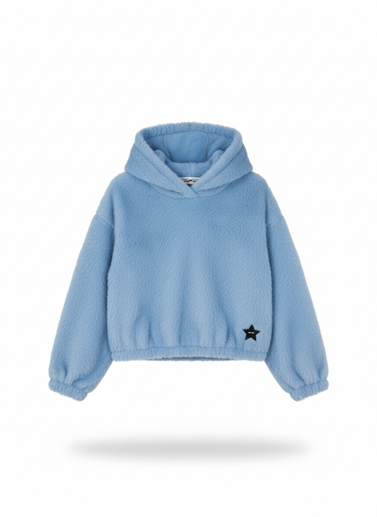 Un completo pensato per avvolgere la neonata in morbidezza, senza rinunciare a un tocco di stile. Realizzato in tessuto soffice e vellutato, simile a una pelliccia sintetica, offre calore e comfort ideali per le stagioni più fresche. La felpa con cappuccio si indossa con facilità e si abbina perfettamente alla gonnina ampia, che dona movimento e leggerezza ai primi passi. Il design è pulito e curato: taglio corto sulla felpa, maniche lunghe e gonnina leggermente arricciata per un effetto giocoso ma non eccessivo. Due piccole stelle nere applicate sui lati aggiungono un dettaglio grafico discreto, che conferisce personalità senza essere invadente. Perfetto per foto, battesimi o semplici giornate speciali. Un capo che sa stare bene ovunque, con un’anima coccolosa e un tocco di raffinatezza. Pratico, resistente e con un tessuto che sa farsi notare per la sua morbidezza: il completo ideale per chi cerca comfort e stile in un’unica soluzione.