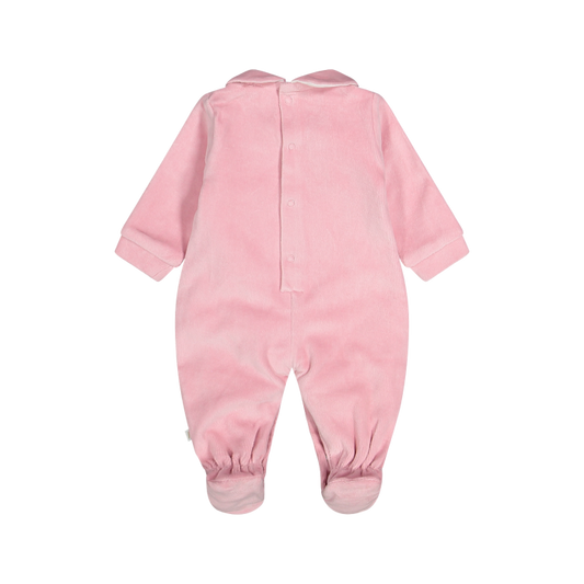 Realizzata in soffice ciniglia in cotone biologico, avvolge la pelle delicata del tuo bebè con una carezza naturale, ipoallergenica e rispettosa dell’ambiente. Il grazioso colletto arrotondato regala un look dolce e raffinato, mentre il tenero ricamo sul davanti aggiunge un tocco di poesia a ogni momento. Per rendere i cambi ancora più semplici, è dotata di apertura parziale sul retro e bottoncini automatici nell’inguine: praticità e comfort in un solo gesto. Perfetta per i primi giorni di vita, questa tutina unisce delicatezza, stile e attenzione per il pianeta – perché il tuo piccolo merita solo il meglio, fin dal primo respiro.