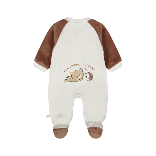 Realizzata in soffice tessuto interlock elasticizzato, avvolge il tuo piccolo in un abbraccio caldo e confortevole. Le maniche in ciniglia misto cotone aggiungono un tocco di morbidezza extra, perfetto per le giornate più fredde.