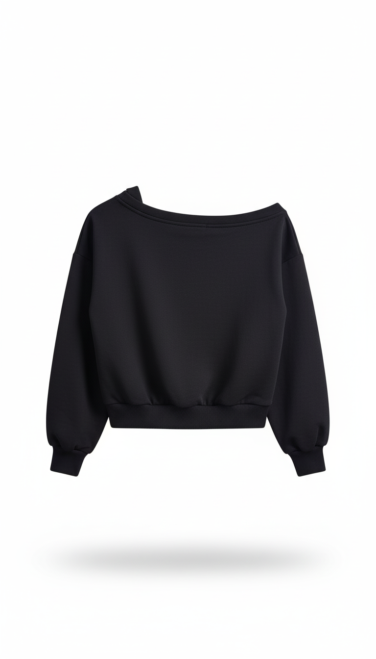 Akyta felpa modello cropped mono spalla con stampa sul fronte ragazza
